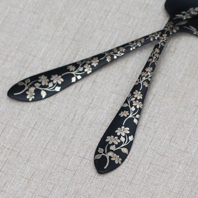 Stainless Steel Black Coated 29pcs Cutlery Set Floral